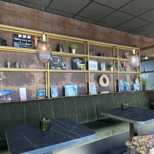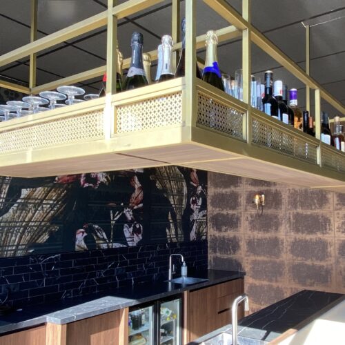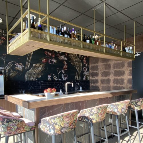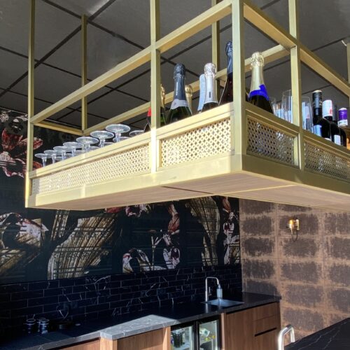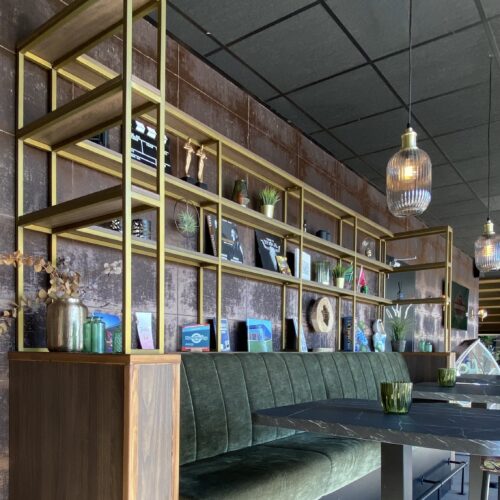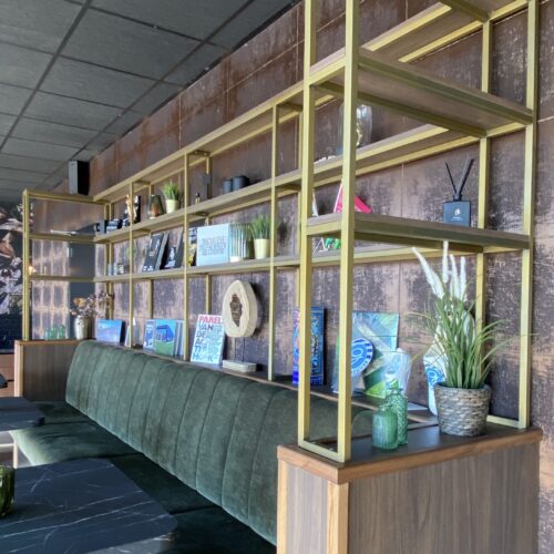 Voor MediaCows in Doetinchem hebben wij dit mooie flessenrek in messing kleur met bijpassende wandkast gemaakt.